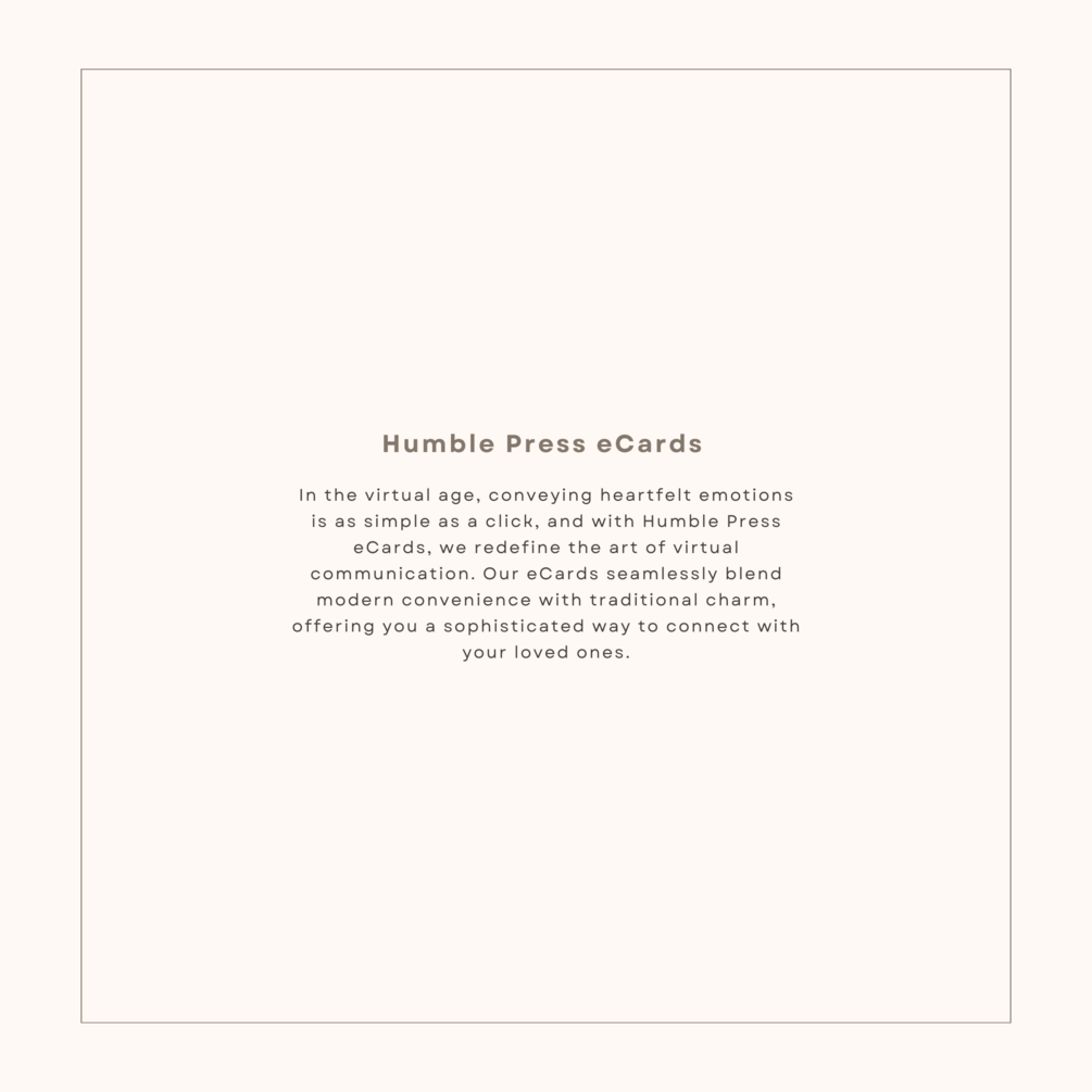 Experience the beauty of heartfelt connections with our exquisite Humble Press eCards. Crafted with care and designed to deliver a touch of sincerity, these virtual greeting cards redefine the art of expressing your sentiments in a digital age.